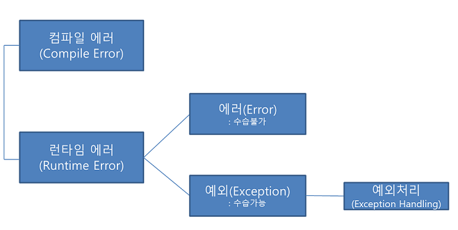 시스템 오류(error) : 가상 머신에서 발생, 개발자가 처리할 수 없는 오류