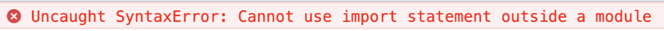 ESM은 모듈화 문법인 import, export를 별도의 도구 없이 브라우저 자체에서 소화해 낼 수 있는 모듈 방식을 의미한다. 만약 아래와 같은 코드를 웹팩과 같은 번들러 없이 브라우저에서 실행하면 에러가 발생한다.