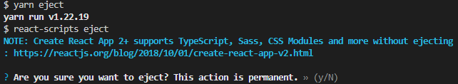 CRA는 강력하지만 커스텀이 조금 힘들다는 단점이 있는데, 만약 설정이 궁금하거나 수정하고 싶다면 다음 명령어를 실행하면 된다.